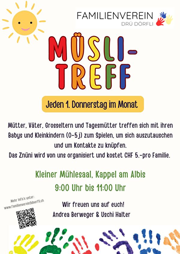 Mütter, Väter, Grosseltern und Tagesmütter treffen sich mit ihren Babys und Kleinkindern (0-5J) zum Spielen, um sich auszutauschen und um Kontakte zu knüpfen. Wir organisieren ein Znüni und Kaffee.